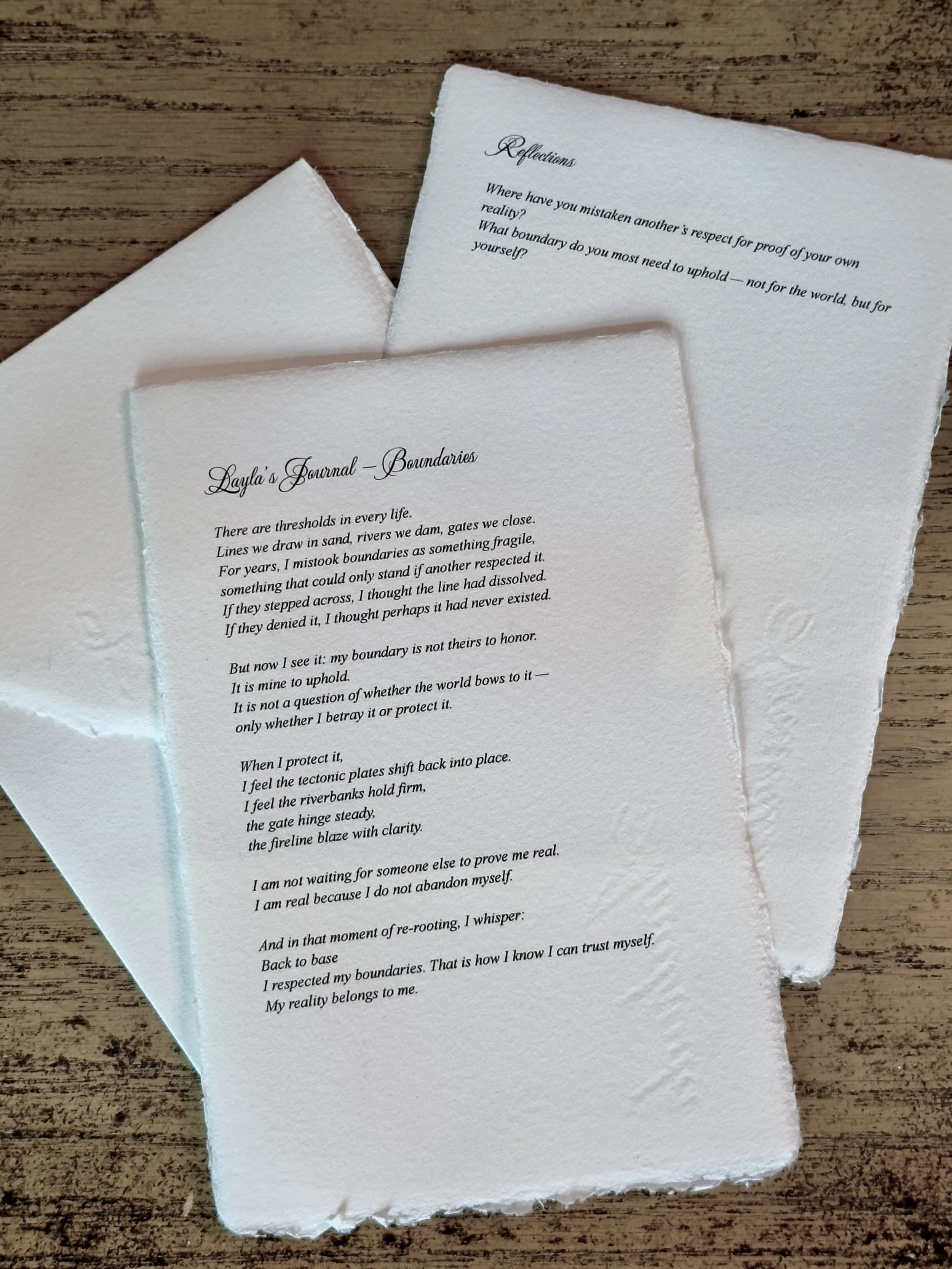 Each letter is a companion piece, a way to walk forward together. They arrive not as digital notifications, but as something luminous and enduring: words printed on handmade Amatruda cotton paper, sealed with care, carried through the quiet ritual of post.